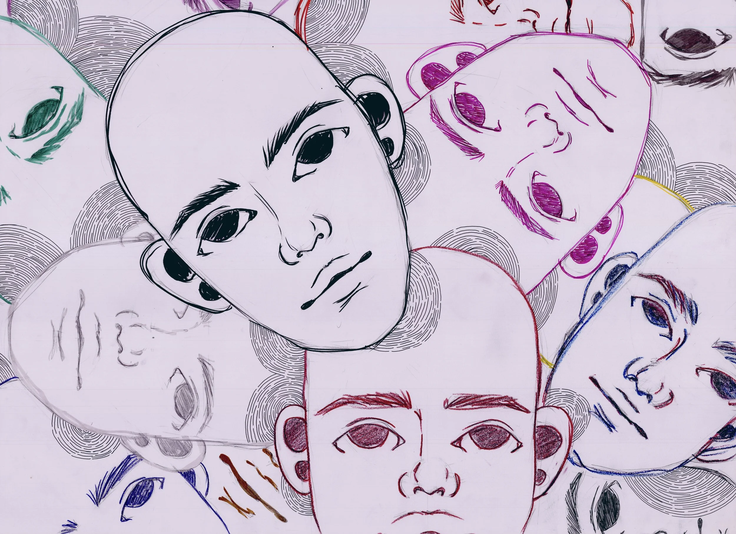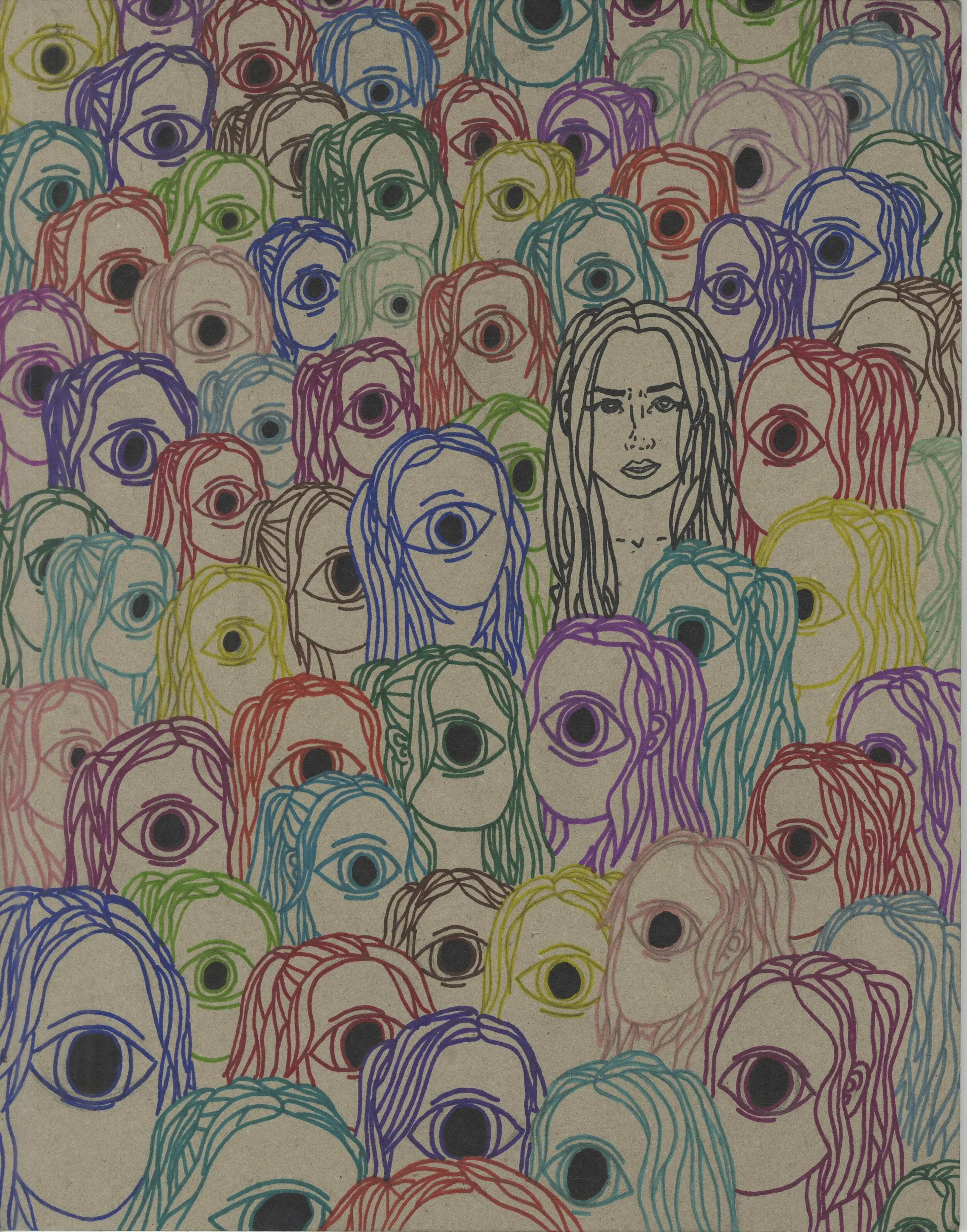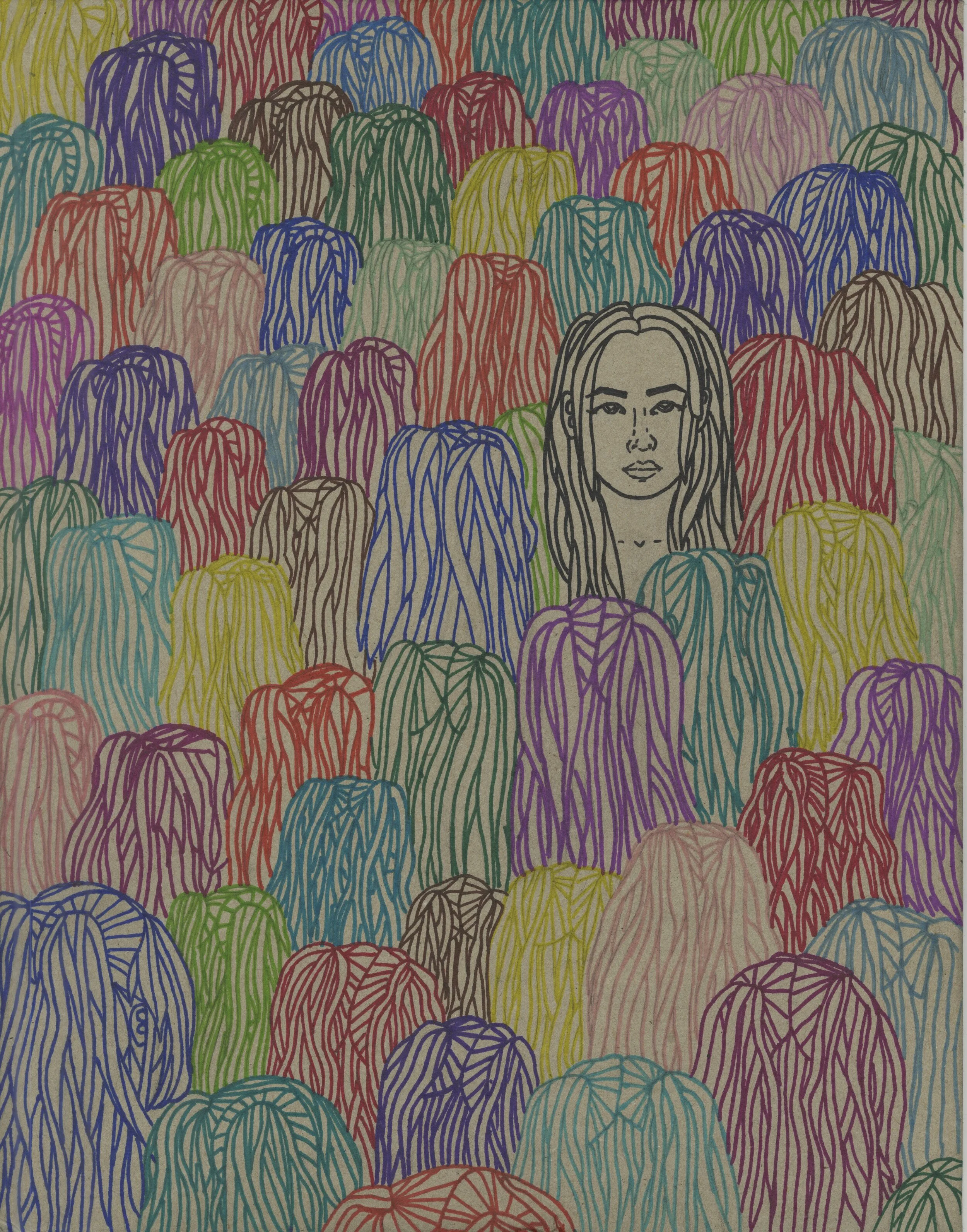 Self-portrait with black ink & collage — 2016